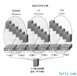 虚拟SAN(VSAN)功能的最重要目的是实现对大型SAN的更加有效、安全的管理。VSAN是一种在光纤通道交换阵列中实现更高安全性和可扩展性的机制。VSAN可以在物理上连接到同一个交换阵列的设备之间提供隔离,从而可以在一个共同的物理基础设施上创建多个逻辑SAN。